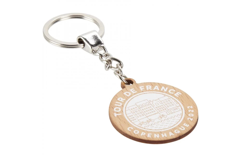 Caractéristiques du porte-clé officiel en bois Grand Départ Copenhague TOUR DE FRANCE 2022 :